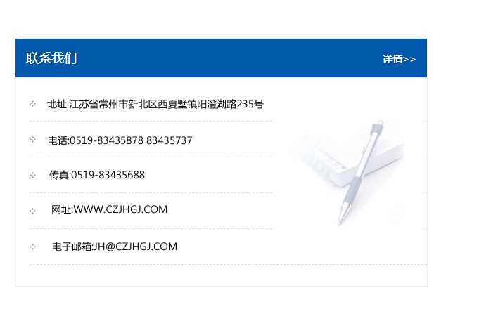 地址:常州市新北區友邦商務大廈1幢16、17層  電話:0519-85101652  傳真:0519-85112595  郵編:213022  網址:www_cz-jiayue_cn.5blw.com  郵箱:xiajifengaa@163.com